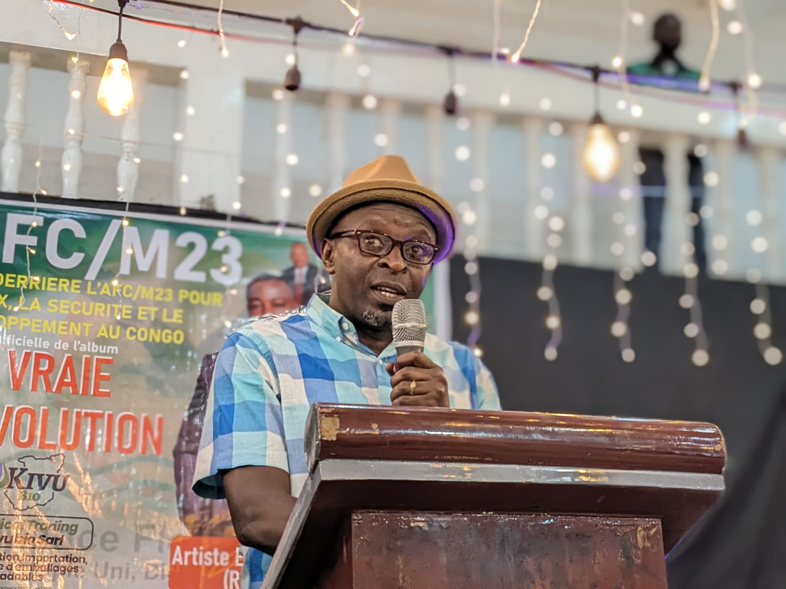 Il a ajouté : « Les 2.345.000 mètres carrés, soit la superficie du Congo, avec une population estimée à plus de cent millions, est fragilisée par la haine attisée par le pouvoir de Kinshasa. Toutefois, l’artiste Élie Bamusemba nous interpelle à vivre ensemble», a-t-il souligné, avant de rappeler à l’assistance que sa présence dans cette salle témoigne de l’accompagnement et de l’appui à l’AFC/M23 pour le développement et la sécurité durable dans la province du Nord-Kivu, sous l’égide du gouverneur Bahati Musanga Erasto.