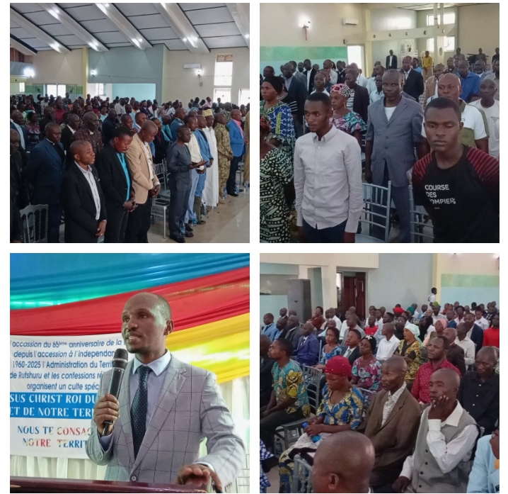 Un culte de consécration a été organisé à Kiwanja ce Lundi 30 Juin 2025 à l’occasion de la célébration du 65 ème anniversaire de l’accession à l’indépendance, messe présidée par l’administrateur du Territoire de Rutshuru Monsieur Prince Mpabuka ,il a été question pour les fidèles des églises catholique, musulman, kimbanguste et églises de réveil de prier, chanter et denser pour la paix en République Démocratique du Congo.
